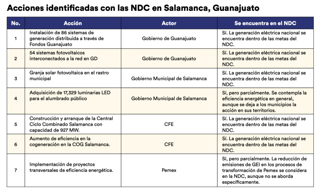 Salamanca, en el estado de Guanajuato, es el municipio con mayores emisiones de gases de efecto invernadero (GEI) en México, según datos oficiales de la Secretaría del Medio Ambiente y Ordenamiento Territorial de esa entidad. Su situación refleja las tensiones entre una gobernanza energética centralizada y una acción climática local limitada. Con apoyo de la Iniciativa para la Transparencia en la Acción Climática (ICAT), México Evalúa aplicó, en 2024 y 2025, a nivel local, la metodología de Acción Subnacional y No Estatal (NSA) y la Herramienta de Agregación de Acción Climática (CAAT), ambas de ICAT. El objetivo fue cuantificar contribuciones de gobiernos locales y actores no estatales —como el sector privado—, que usualmente están ausentes en el Sistema Nacional de Monitoreo, Reporte y Verificación (MRV), que es la instancia que revisa los compromisos climáticos, mejor conocidos como Contribuciones Determinadas a Nivel Nacional (NDC). Al analizar iniciativas del sector energético en el municipio, en los distintos niveles, el estudio identificó y documentó algunas acciones subnacionales y no estatales con impactos potenciales de mitigación, pero también se enfrentó a vacíos de información, escasa colaboración interinstitucional y una débil participación del sector privado para documentar proyectos de mitigación y reportarlos como un ejercicio de transparencia climática. El caso de estudio subraya la necesidad de impulsar desde el Estado una gobernanza más colaborativa y activar incentivos que motiven al sector privado a documentar, reportar y verificar sus metas, acciones de mitigación y resultados.